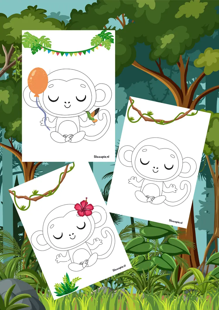 Er zijn 3 verschillende kleurplaten die je kan downloaden. Teken Slaaapie in de jungle of op een verjaardag. Laat je fantasie de vrije loop. Hang de kleurplaat boven je bed dan is Slaaapie altijd dicht bij je. Samen kleuren en verder tekenen.
